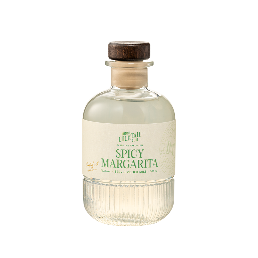 De Spicy Margarita is geen cocktail, het is een statement. Tequila, limoen, triple sec en een scherpe chili kick die je wakker schudt. Spicy, verfrissend en allesbehalve verlegen. Uit één flesje van 200 ml shake je 2 fiery Margarita’s die je avond naar een hoger level tillen.
